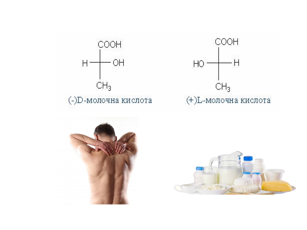Любителі пообійматися зі штангою можуть скептично поморщити носа при згадці про молочну кислоту. Але згадуєм страшну біохімію – молочна кислота буває в двох формах – ізомерах. По-простому – це наче і ті самі речовини, але не зовсім. У них однаковий склад, але форма молекули дзеркально відображена, а також – різна біологічна дія. Таке собі задзеркалля на нанорозмірному рівні. Та молочна кислота, через яку лижники-початківці не можуть наступного дня по сходах спускатися – D (-) ізомер, а та, яка в пакеті кефіру – L(+) ізомер.